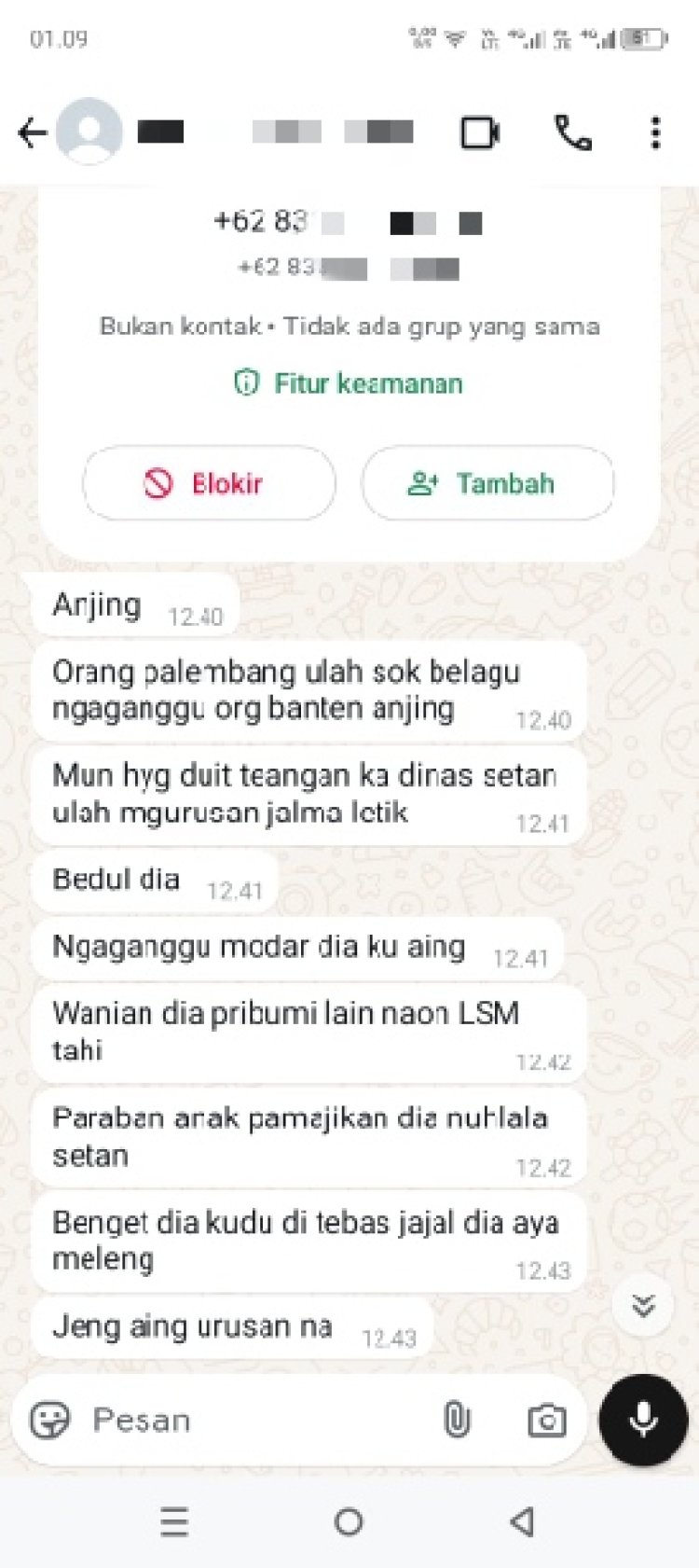 Sementara itu, MR X yang diduga mengirimkan pesan ancaman tersebut tidak memberikan klarifikasi maupun hak jawab saat dikonfirmasi oleh media. Nomor WhatsApp yang digunakan oleh MR X pun kini sudah tidak aktif. (W4n/01).