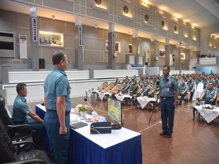 Puspen TNI | Kababinkum TNI Laksda TNI Kresno Buntoro, S.H., LL.M., Ph.D. memimpin pelaksanaan Safari Hukum dan Sosialisasi Netralitas TNI pada Pemilu 2024 di jajaran TNI tahun 2023 yang diikuti oleh personel jajaran Koarmada II, bertempat di Ruang VIP Nala Koarmada II Surabaya, serta diikuti pula melalui Vicon jajaran Lantamal dan Lanal Koarmada II, Senin (18/9/2023).