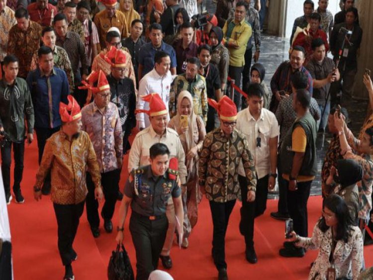 Makassar | Menteri Pertahanan Republik Indonesia Prabowo Subianto menghadiri kegiatan rapat kerja nasional Asosiasi Pemerintah Kota Seluruh Indonesia (Rakernas Apeksi) XVI 2023 di Kota Makassar yang mengusung Visi Kota Untuk Pemimpin Negeri di dampingi H. Bima Arya Sugiarto (Ketua Apeksi - Walikota Bogor), dan Ir. H. Mohammad Ramdhan Pomanto (Walikota Makassar), Kamis (13/7/2023).
