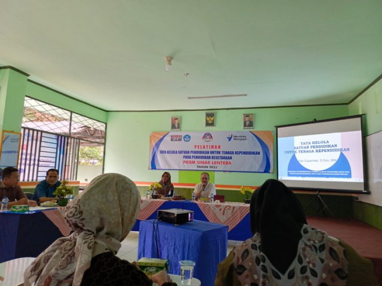 Pandeglang - Banten | Jajaran Pusat Kegiatan Belajar Masyarakat (PKBM) Sinar Lentera laksanakan Kegiatan pelatihan penyusunan modul ajar Projek Penguatan Profil Pelajar Pancasila (P5) atau Kurikulum Merdeka serta Tata kelola satuan pendidikan, Jum’at (06-10-2023) di Aula gedung PKBM Sinar Lentera. Acara itu dilaksanakan untuk pemantapan menyusun modul projek, karena perlu memahami pengertian dan tujuan projek tersebut.