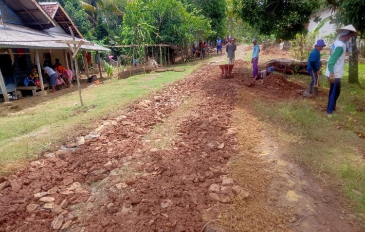 Salah satu warga yang ikut bekerja yang namanya tidak mau disebutkan mengatakan. "Batu yang dikirim hanya Batu Secrop saja tidak ada batu belah, dan pastinya ini jalan tidak akan bertahan lama, pasti dilewatin Kendaraan beberapa kali juga Pasti Rusak dan untuk Ketua Kelompoknya sendiri dari awal kami ngerjakan sampai saat ini belum pernah datang kelokasi singkatnya.